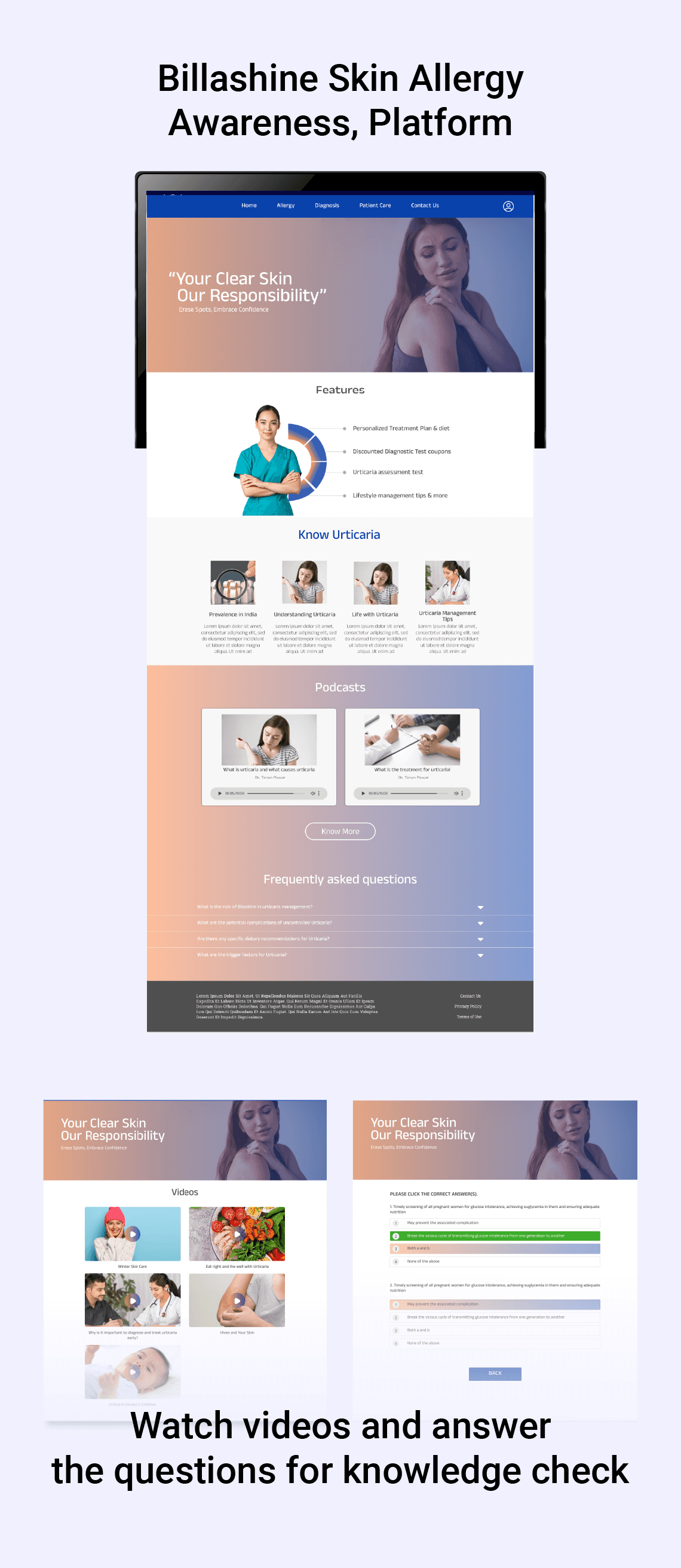 The primary goals of this project are to design a highly engaging and approachable multimedia platform that makes complex information about skin allergies accessible to the general public. A key objective is to increase user motivation to move beyond self-diagnosis by providing clear, confidence-boosting information and a pathway to action (taking treatment on time). Ultimately, the design must successfully utilize interactive formats like games and questionnaires to drive engagement and reinforce the importance of professional, timely medical intervention.