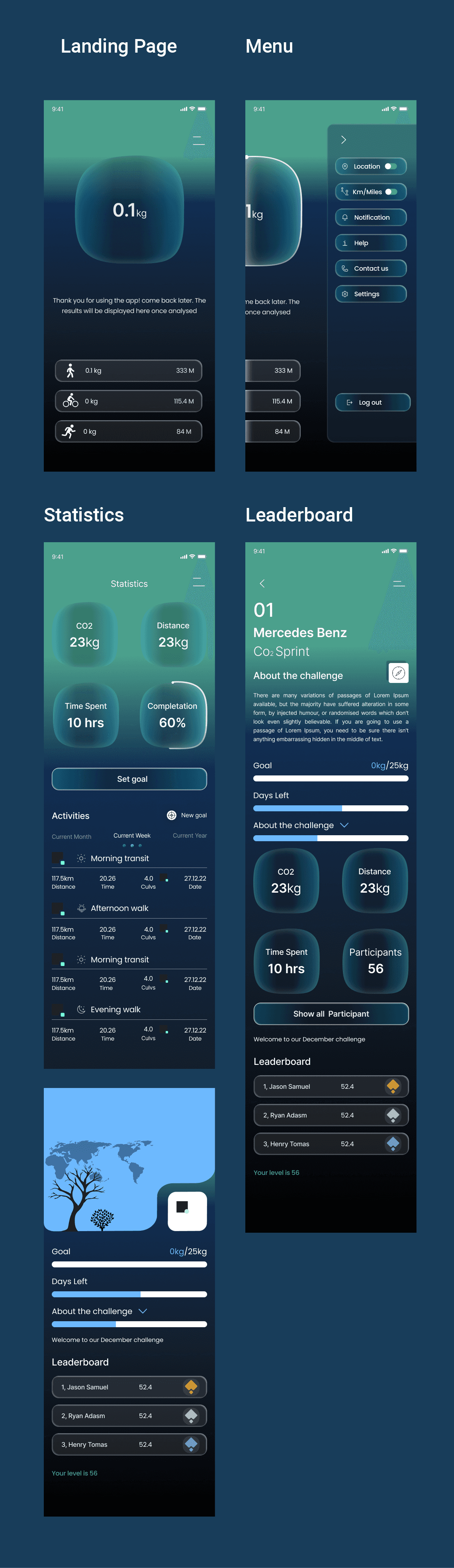 The main challenge lies in the complexity of data visualization; the app must translate scientific CO2 calculations into simple, relatable units (like "trees planted" or "lightbulbs saved") to maintain user engagement. Specific UX hurdles include designing an automated or semi-automated activity logger that doesn't feel like a chore to update, and ensuring the goal-setting interface is flexible enough for different lifestyles. Additionally, the design must balance a "green" aesthetic with a modern, high-tech feel to avoid looking like a generic environmental tool.