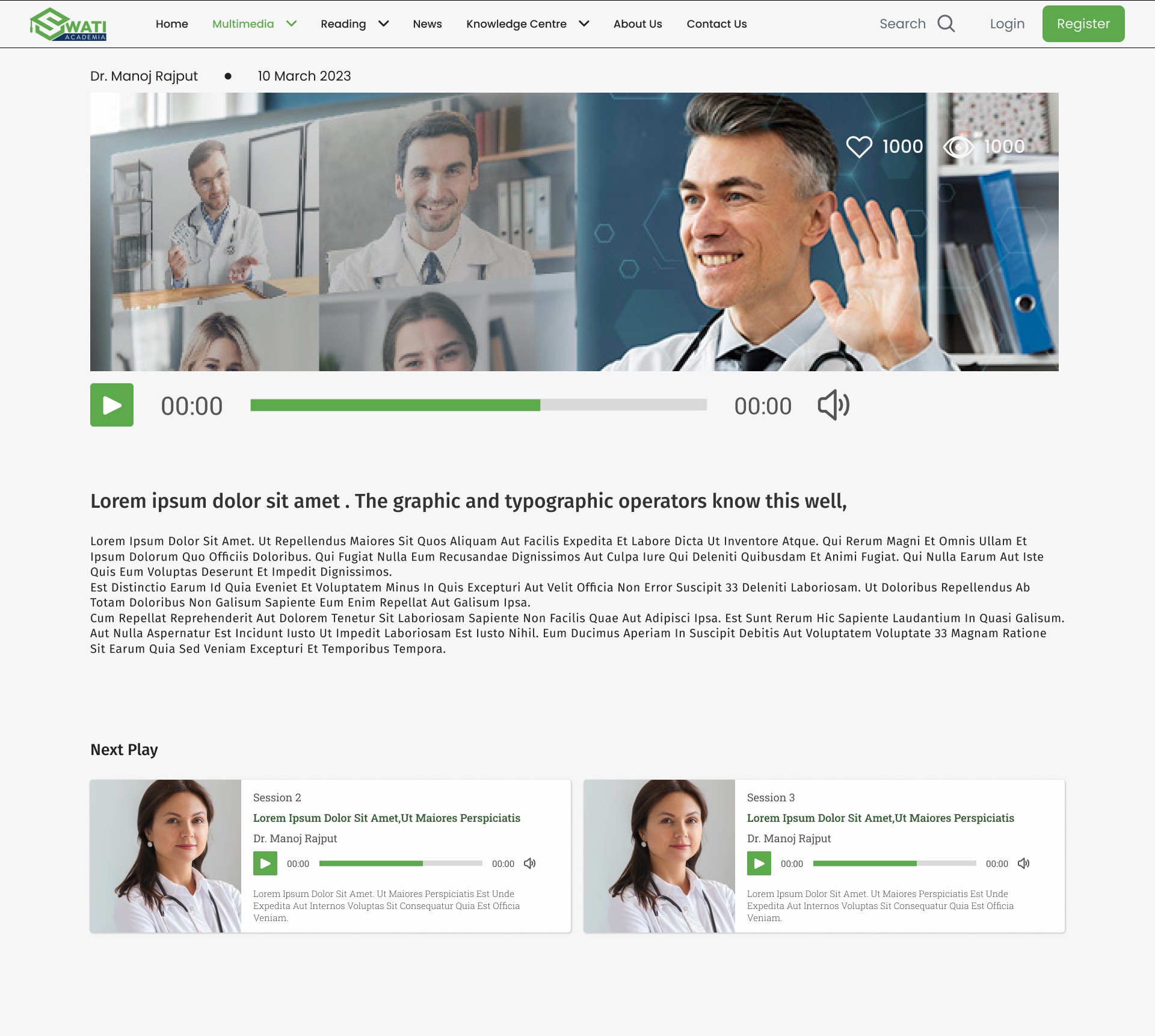 The Swati Academia website is a specialized digital learning and resource platform dedicated to Continuing Medical Education (CME). Its core function is to provide doctors with updated knowledge on a wide variety of medical topics, delivered across multiple content formats (e.g., articles, videos, summaries, interactive modules). The site acts as an authoritative, time-efficient resource, allowing busy medical professionals to stay abreast of the latest research, guidelines, and clinical best practices necessary for enhancing their professional knowledge base.